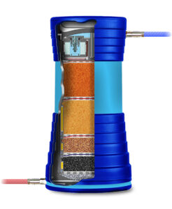 In der fünften Stufe wird das Wasser entkalkt. Je nach Wunsch kann das Trinkwasser teil- oder vollenthärtet werden. Des Weiteren werden Ammonium und Kalium herausgefiltert.